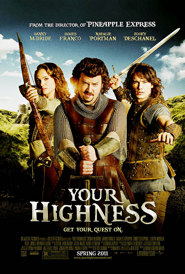 "Your Highness" is a tale for two brothers, one very brave and the other not so, in a quest to save a damsel in distress. When Fabious' bride-to-be, Belladonna, gets kidnapped by the evil wizard Leezar, the king gives his deadbeat son Thadeous an ultimatum: Man up and help rescue her or get cut off.